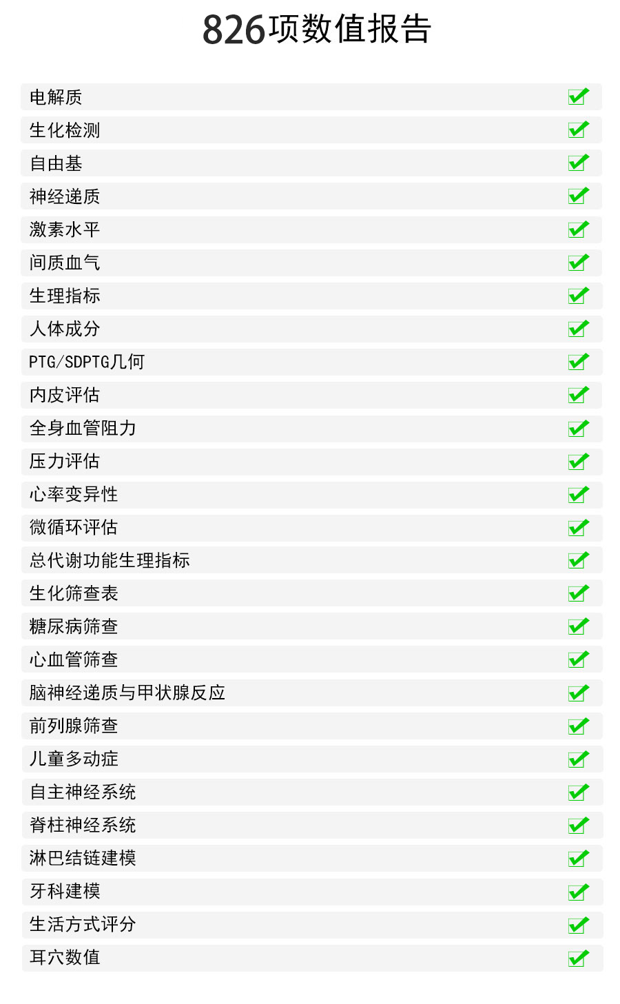 反應(yīng)分析、數(shù)字脈波分析、血流動(dòng)力學(xué)評(píng)估和自主神經(jīng)系統(tǒng)評(píng)估等版塊組成的強(qiáng)大的智能健康管理集成系統(tǒng)。